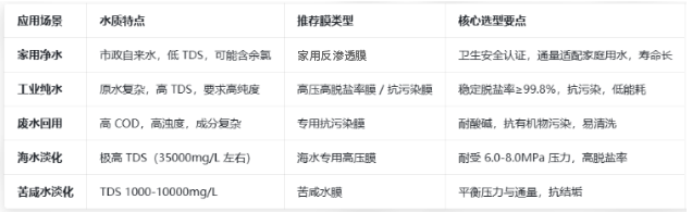 三、不同场景 RO 膜选型指南